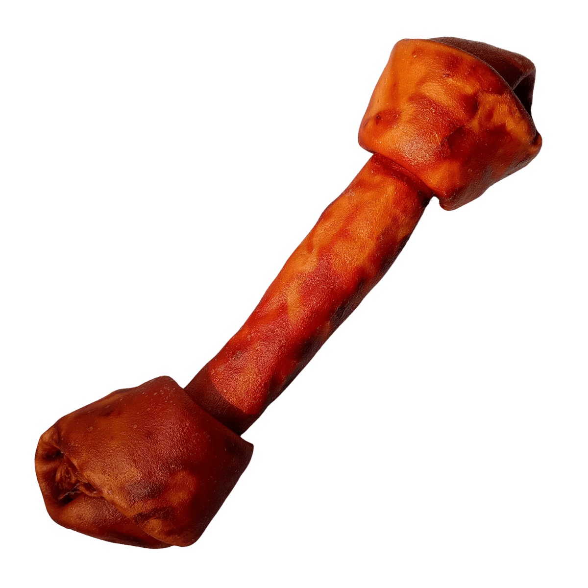 Raspa de couro bovino, amido de milho, corante artificial INS 102, 123, 133, aroma artificial bacon, Auxilia no controle do tártaro, na redução do estresse e tédio.