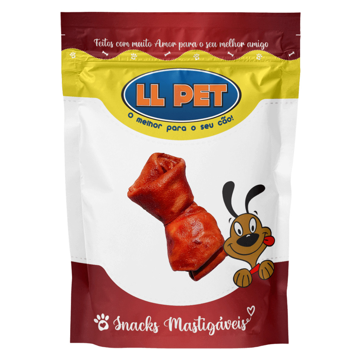 Raspa de couro bovino, amido de milho, corante artificial INS 102, 123, 133, aroma artificial bacon, Auxilia no controle do tártaro, na redução do estresse e tédio.